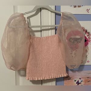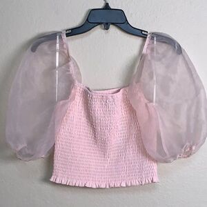 Puff Balloon Sleeve Smocked Crop Pink Top