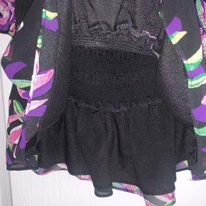 Sheer sleeves and ruffles along the bottom of this gorgeous top.