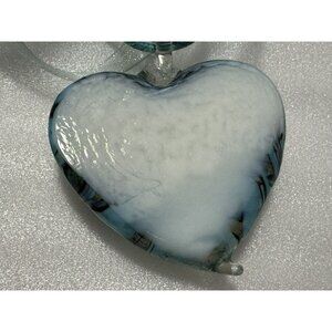 Puffed Heart Murano Glass Pendant Blue Swirl Black Outline Adjustable Chain