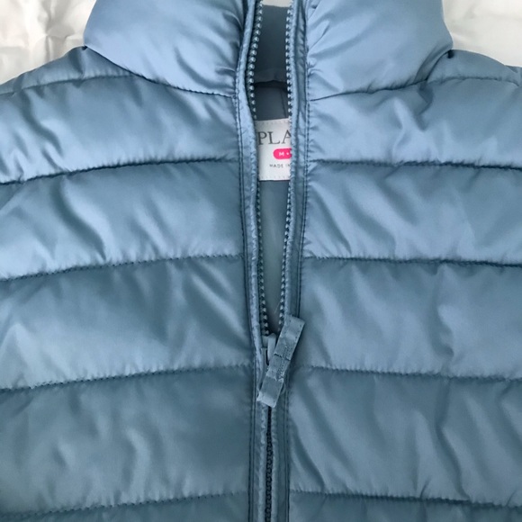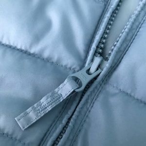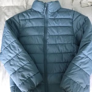 Semi-used light blue puffer jacket. It is very cozy and water resistant.