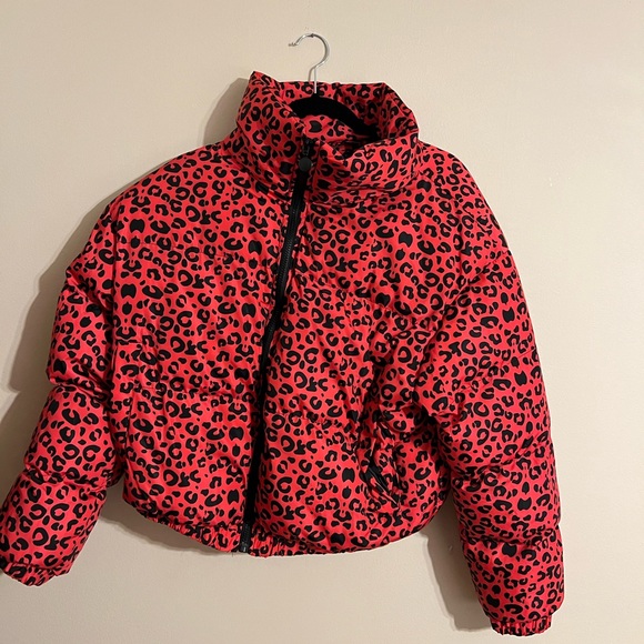 Pink puffer jacket! Size L. Worn once