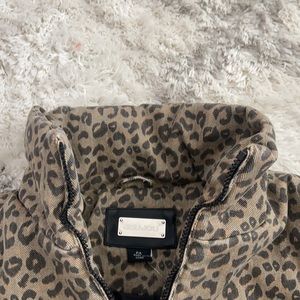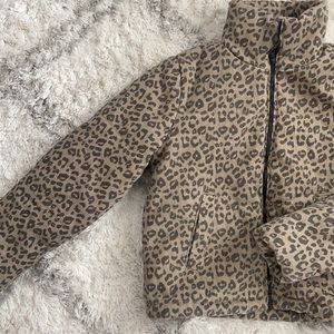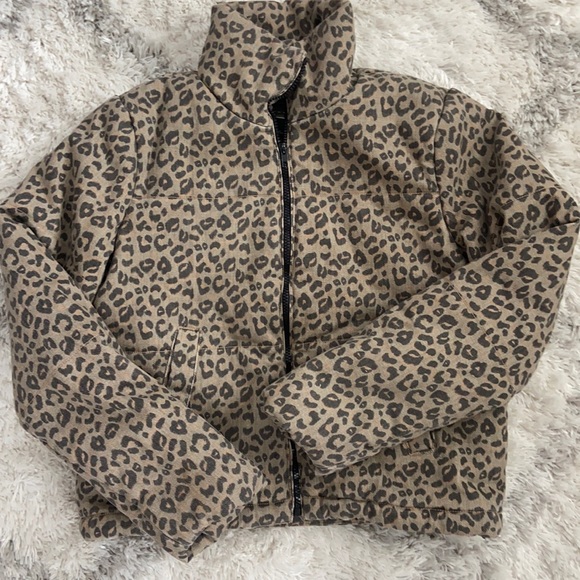 Never worn leopard print puffer jacket is in perfect condition! Material is heavier, perfect for cold weather days! I wear a size small but the medium fit of this allows for layering!