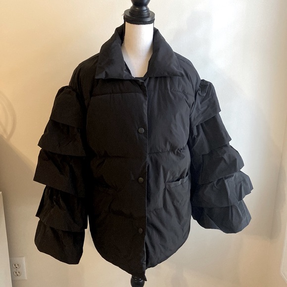 Ruffle sleeve detail, 2 front pockets, 4 front snap closures