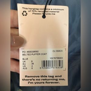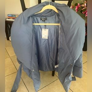 Light blue/gray puffer jacket with collar. NWT! Never worn. Super comfy material. Moving need to unfortunately get rid of it. Size 4