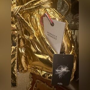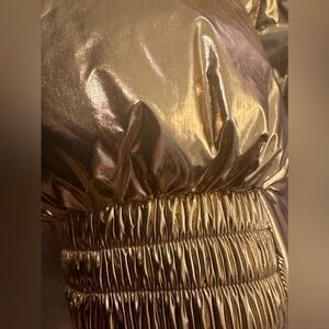 Gorgeous metallic brand new with the tags hooded puffer perfect for skiing or not comes with belt has pockets - just chic