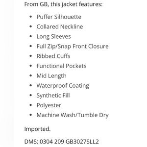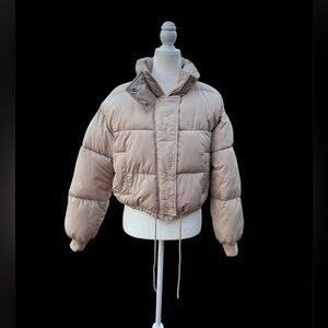 Collared Coated Puffer Jacket. Brand new, no flaws. Color is Taupe. This is a junior/adult size jacket.