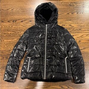 Reversible Stay warm and stylish with this sleek black puffer jacket. Perfect for any occasion.never worn