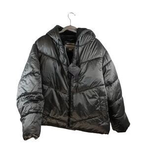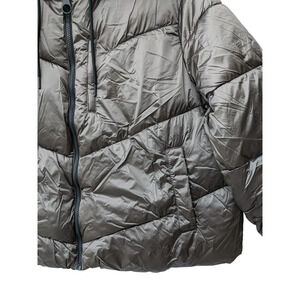 Puffer Jacket Winter Coat Short Ava Viv 4X Plus Hood Sherpa Full Zip Silver Cozy