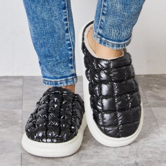 Experience ultimate comfort with the Melody Puffer Plush Slippers. Crafted from luxurious puffer material, these slippers wrap your feet in warmth and softness. The plush interior provides a cloud-like feel, making every step feel cushioned and cozy. Featuring a sturdy yet flexible sole, they’re ideal for lounging indoors while offering the support you need.
