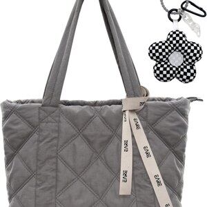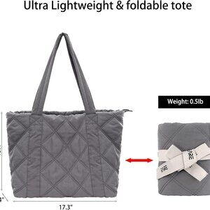 Puffer Quilted Nylon Tote Bag for Women Large Foldable Padded Purse
