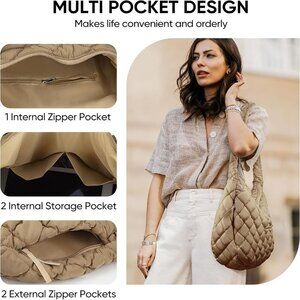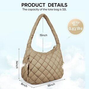 Puffer Tote Bag, Large Carryall Quilted Tote Bag for Women, Comfort Puffer Cross