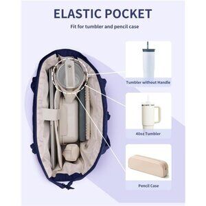 Designed with an inner elastic pocket to perfectly fit for 40oz tumbler with handle. Keep your tumbler secure and easily accessible, whether you’re traveling, working out, or running errands. No more taking up extra space in your tote—stay hydrated with ease!