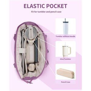 Designed with an inner elastic pocket to perfectly fit for 40oz tumbler with handle. Keep your tumbler secure and easily accessible, whether you’re traveling, working out, or running errands. No more taking up extra space in your tote—stay hydrated with ease!