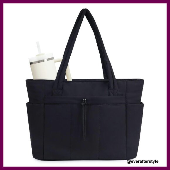 Puffer Tote Bag with Cup Holder Laptop Compartment Trolley Sleeve Travel Work