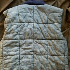 This is a Navy blue jean puffer vest for boys. The material is lightly padded and very durable. Great for a fashionable boy who like to dress comfortably.