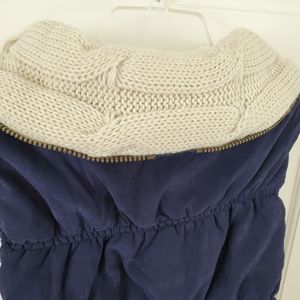 Super fun and comfortable puffer vest with sweater collar!! Keeps you very warm :) Satin like lining. Pockets can be zippered closed, if desired. Very cute look for fall!!