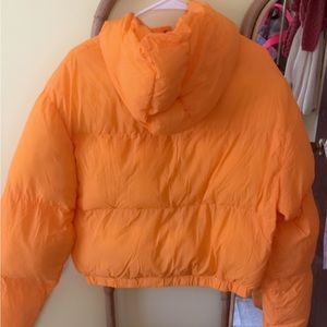 Orange puffer jacket size large from Asos brand is Sweet Habit