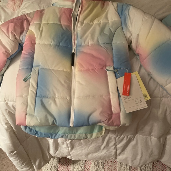 Multi colored puffer jacket for kids! Keeps you warm in the winter!!