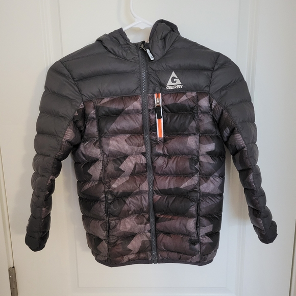 Boys hooded puffer jacket, 650 fill. No rips or stains, a few loose strings. Dog friendly home.