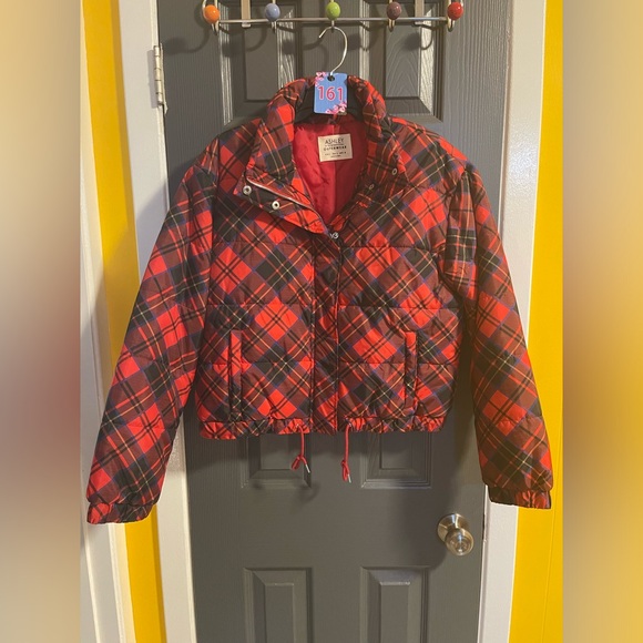 NEW, Red buffalo style plaid. Zips up the front, has elastic sleeves, waist length