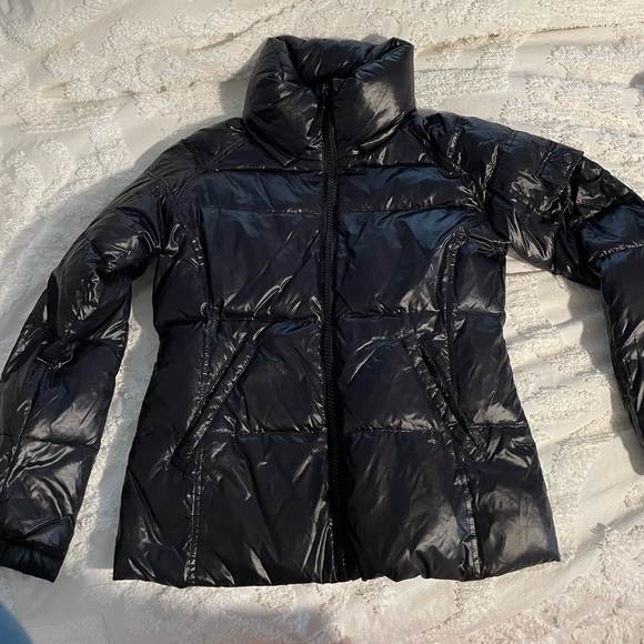 Black puffer jacket with detachable hood. Great condition!