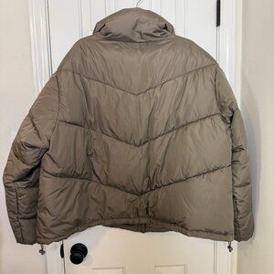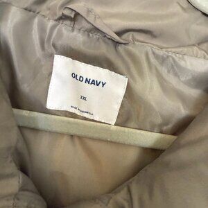Old Navy brand puffer jacket in a size XXL. Zips and snaps, and has the option to tighten on the sides at the bottom. FIts like a plus size 20.