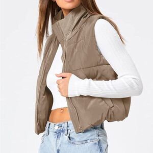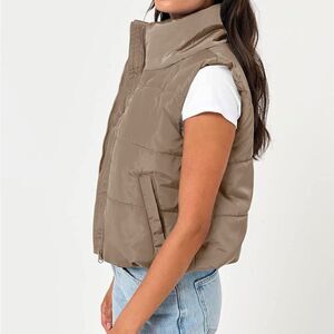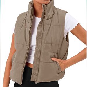 Women’s winter puffer vest. Stand-up Collar, sleeveless, full zip.