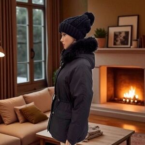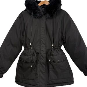 Puffit Faux Fur Mid-Length Hooded Drawstring Parka. NWT