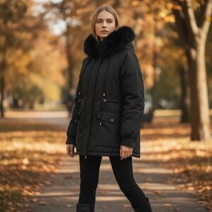 Puffit Faux Fur Mid-Length Hooded Drawstring Parka. NWT