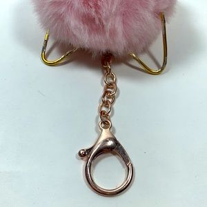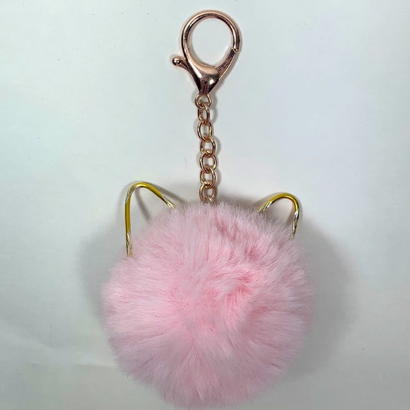 Cute puffy cat keychain has metal ears and metal lobster claw hook on 2 1/2” chain. Body measures approximately 3” x 3”.