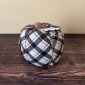 Puffy Fabric Black and White Plaid Pumpkin with wooden leaf THANKFUL tag