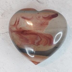 This vibrant Puffy Polychrome Jasper Heart radiates warmth, positivity, and grounding energy. Known as the “Stone of Vitality,” Polychrome Jasper connects you to the Earth’s nurturing energy, helping to stabilize emotions, encourage optimism, and spark creative inspiration. Its swirling, earthy colors bring a sense of balance and peace, making it perfect for meditation, emotional healing, or uplifting any space. Shaped into a heart, this crystal also enhances feelings of self-love, compassion, and emotional harmony.