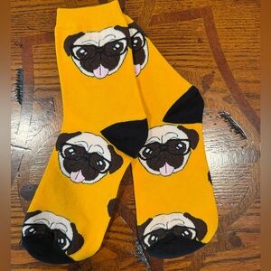 Brand new Pug Sleeping Mask and two new pairs of Pug Socks! The Pug Mask is very soft with a velvety backing. The Pug socks are so cute and colorful! Suggested for size 5-8.