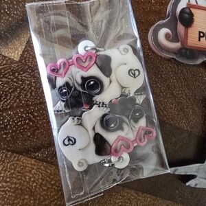 Adorable pug keychain set featuring a 'Bad Puggy' design and a lounging pug. Perfect for dog lovers.