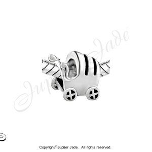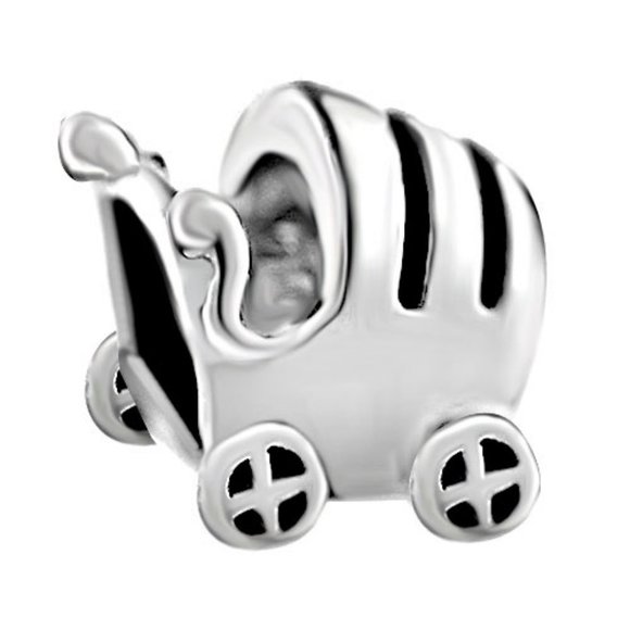 (NP21) Pugster Baby Buggy Stroller Silver Plate Charm. Gift for new mom. Fits Pandora and European charm bracelets.
