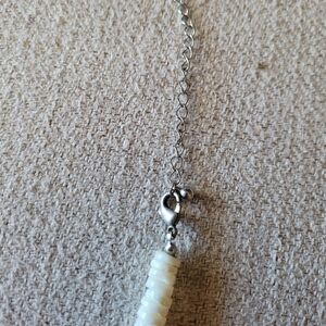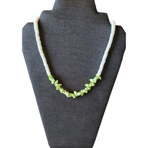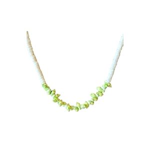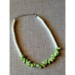 Puka Shell 18" Necklace White with Green Conch Shell Accents Adjustable Vintage