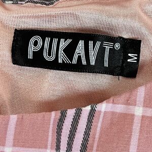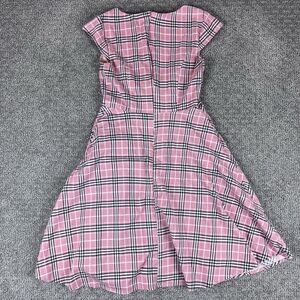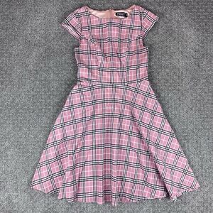 Pukavt Dress Womens Medium Midi Plaid Rockabilly Retro Fit and Flare Pink