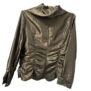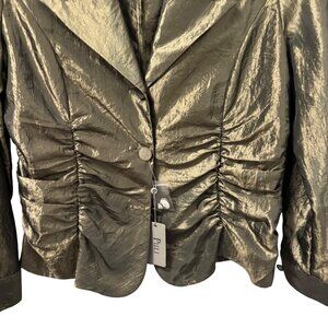 Puli Metallic Ruched Jacket With Dramatic Collar Sz 14 lightweight NWT