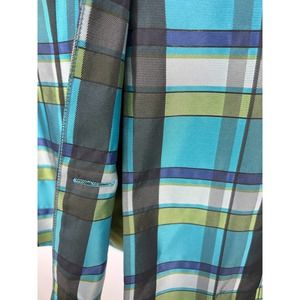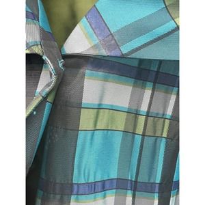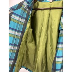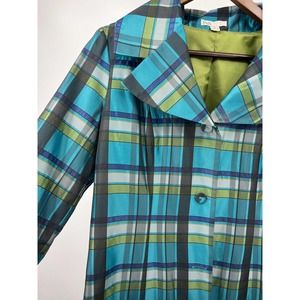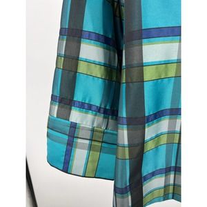 Blue green plaid. Fully lined green. Wide 3/4 Sleeves