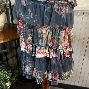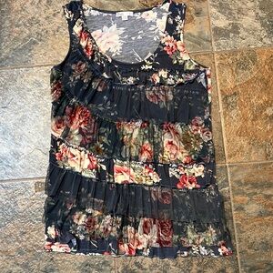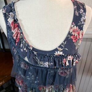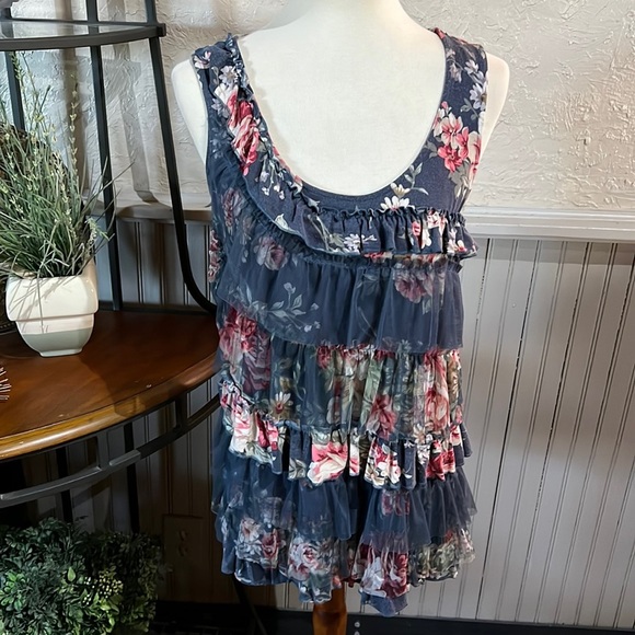 Puli Top Tank Gray Floral Ruffles Darling! Approx. Armpit to armpit 17” Length 27”