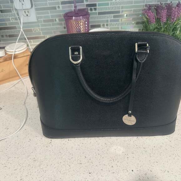 Pulicati Black Textured Leather Satchel Handbag. This stylish and versatile bag features a structured dome shape, ideal for everyday use or special occasions. Made from high-quality textured leather, it offers durability and a sophisticated look. The bag is in excellent pre-owned condition with no significant flaws. Perfect for adding a touch of elegance to any outfit.