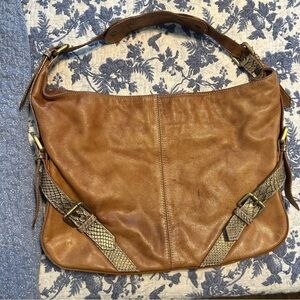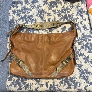 Pulicati Shoulder Bag Italian Made Camel Tan Leather Purse Snakeskin 14.5” x 11”
