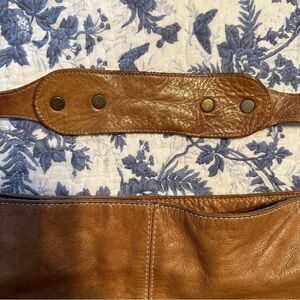 This hobo bag is an excellent addition to the bohemian wardrobe. Camel colored leather in great condition with a couple inside pockets for organizing.