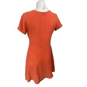 Pull & Bear Coral Short Sleeve Textured Deep V Neck Henley Skater Mini Dress S