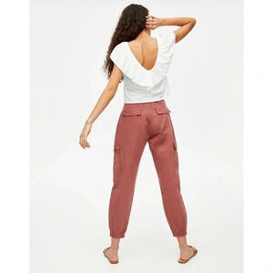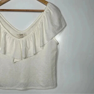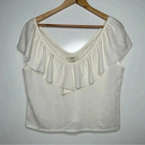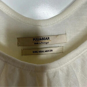 Pull & Bear Cream Ruffled Neckline V-Back Top Size Large