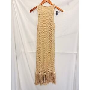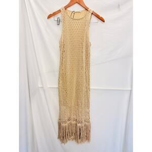 Pull&Bear Crochet Knitted Beige Midi Dress XS Europe Trip Vacation Boho Resort