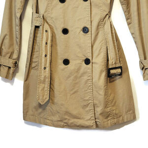 Pull & Bear Double Breasted Belt Tie Waist Mid Length Tan Trench Coat Size S