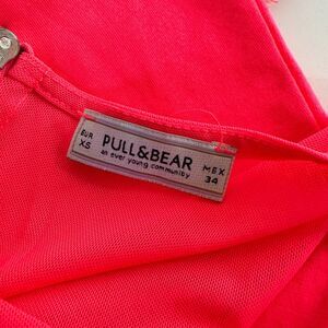 This Pull & Bear top in fluorescent pink is a sexy and stylish addition to any wardrobe. The sleeveless design is perfect for spring to fall, and the back zip adds a touch of edginess. The top is made of cotton and sheer mesh fabric, making it both comfortable and chic. The brand is Pull&Bear, a trusted name in fashion. The top is perfect for a night out or a casual day. The color is eye-catching, and the mesh fabric adds an element of surprise.