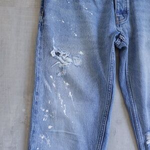Pull & Bear Mens Jeans Vintage Distressed Blow-out Knee Paint Splatter 32 Waist