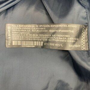 Pull & Bear Men's Zip Front Puffer Jacket - Navy Blue/Red, Size Large